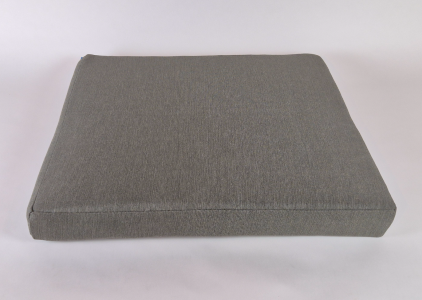 Een zitkussen met een tussenstuk afwerking in onze prima-altijd-buiten® vulling. Gaas aan de onderzijde.