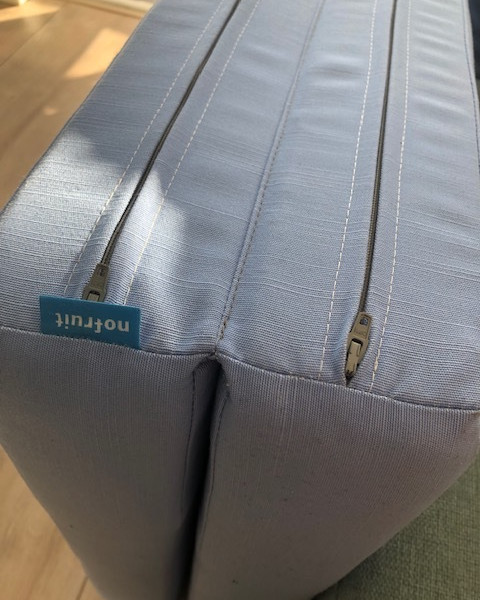 Het aan elkaar maken van twee kussens, zodat je deze kunt dubbelvouwen of als ligbed kunt gebruiken. Dit kan door middel van een strookje stof, zodat je de kussens zowel linksom als rechtsom kunt dubbelvouwen of met een enkele knik.